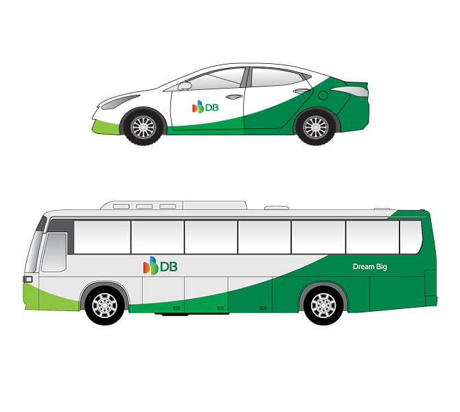 유니폼류는 대외적으로 업무 능률의 향상 및 직원 간의 일체감과 자긍심을 고취시키고, 대외적으로는 DB의 아이덴티티를 나타내는 역할을 합니다. 차량류는 DB의 아이덴티티를 대외적으로 전달하는 주요 정보 전달 수단입니다. 차량류는 다양한 타입이 존재하므로 통일된 디자인이 중요하며, 적용 시 같은 차종이라 하더라도 제조사 또는 연식의 차이가 있으므로 제시된 기준에 가장 적합한 형태로 규격이나 비례를 재조정하여 제작해야 합니다.