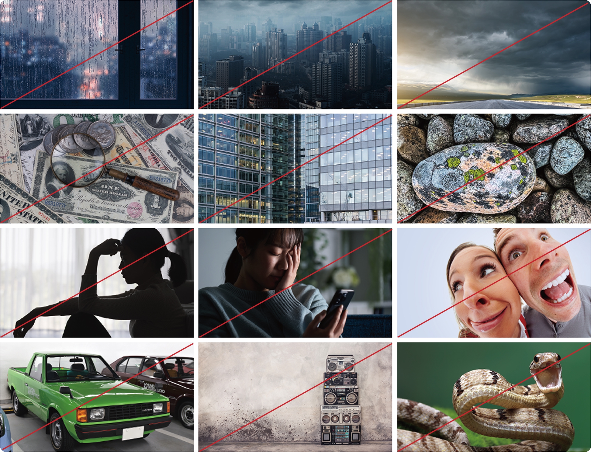 - 구름 낀 하늘, 우울하고 침체된 표정의 사람 등 어두운 느낌의 배경/이미지